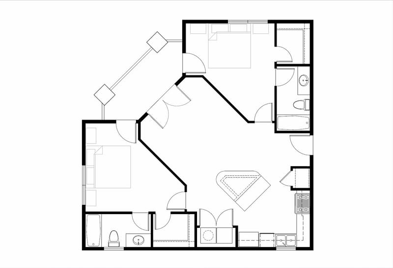 Our largest balconies and kitchen islands designed as Baby Grand Pianos make this floor plan perfect for cooking, dining, and entertaining.